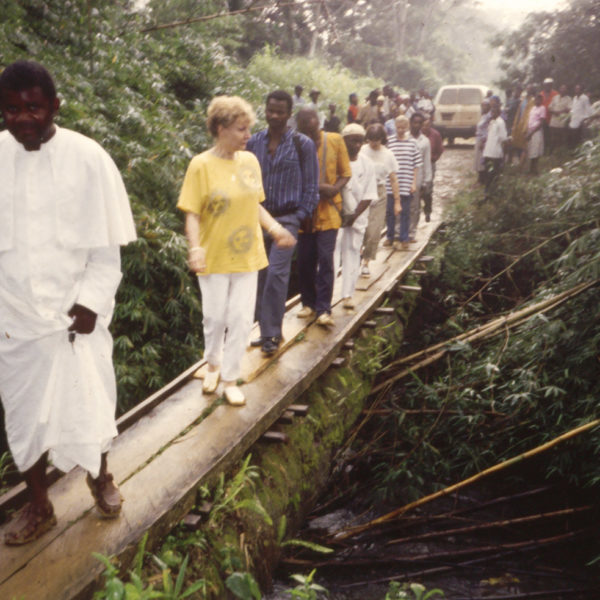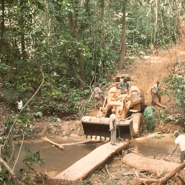 Dans cette région tropicale, durant la saison des pluies, les orages apparaissent brutalement et sont souvent très violents. Pendant plusieurs jours après leur passage, les habitants ne peuvent plus accéder à certains lopins de terre qu’ils cultivent en forêt. Les denrées pourrissent alors sur place. Sans pont, il leur est impossible d’utiliser des moyens de transport motorisés pour sortir de Ngodi, pour échanger avec d’autres villages ou se rendre en ville. Cette situation les contraint à porter sur leur dos et sur leur tête du lourdes charges composées des produits de leur récolte afin de les acheminer vers le marché hebdomadaire de Dibang, petite ville située à 4 km de Ngodi.