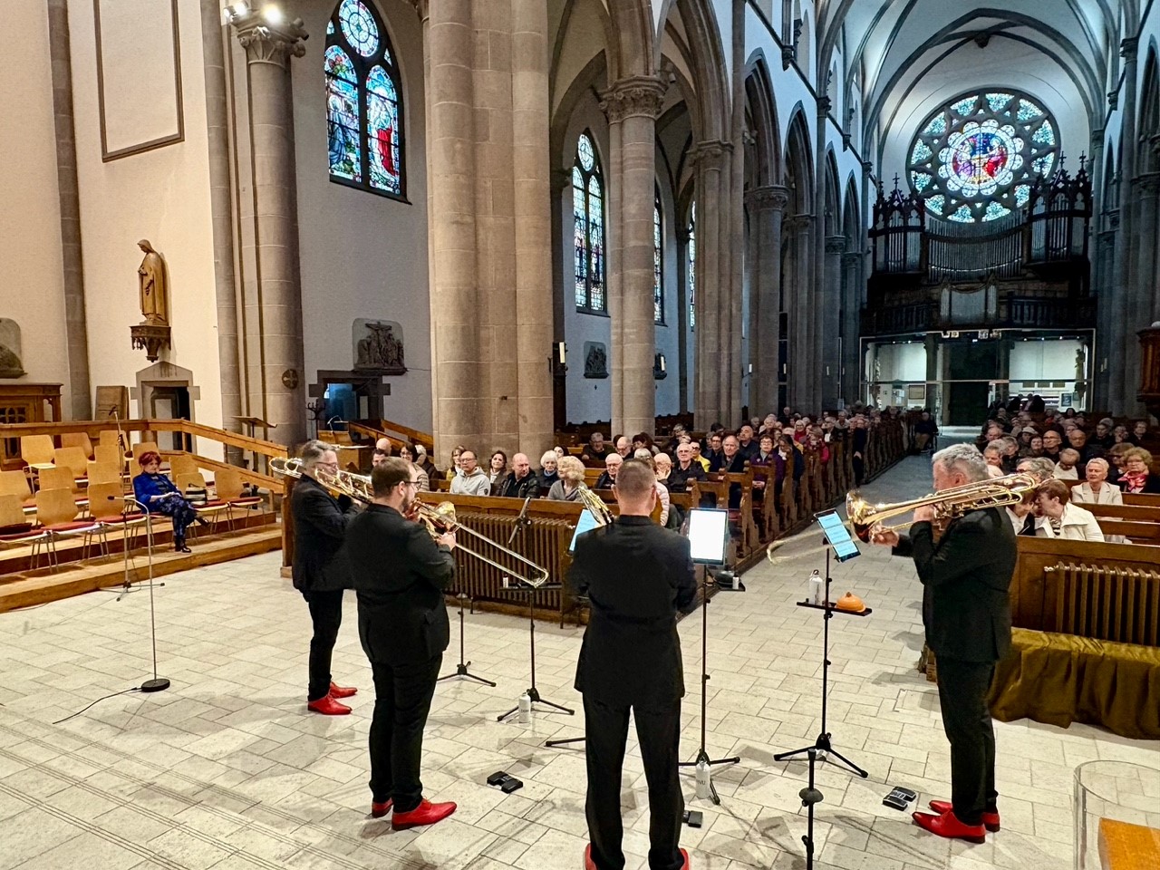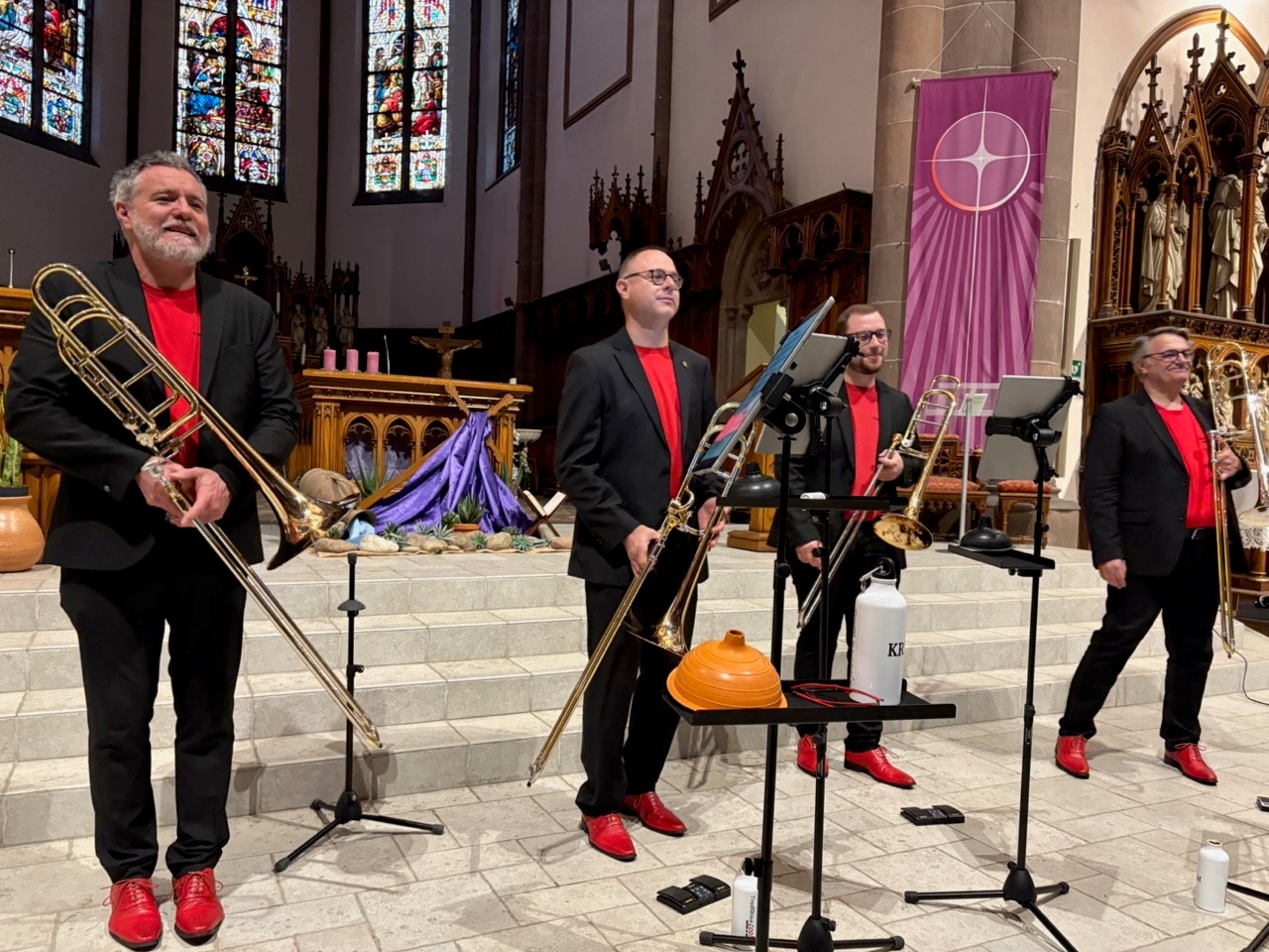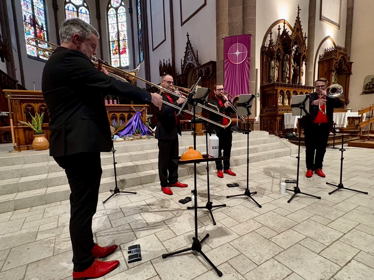 La belle acoustique de l’église sainte-Geneviève de Mulhouse s’est prêtée à merveille au magnifique concert du quatuor Trombinacoolos, le 8 mars 2026. Les quatre sympathiques trombonistes ont, pour la troisième fois, proposé gracieusement leurs talents pour une escapade musicale au profit d’AFRIQUE FUTURE qui a attiré un public nombreux.