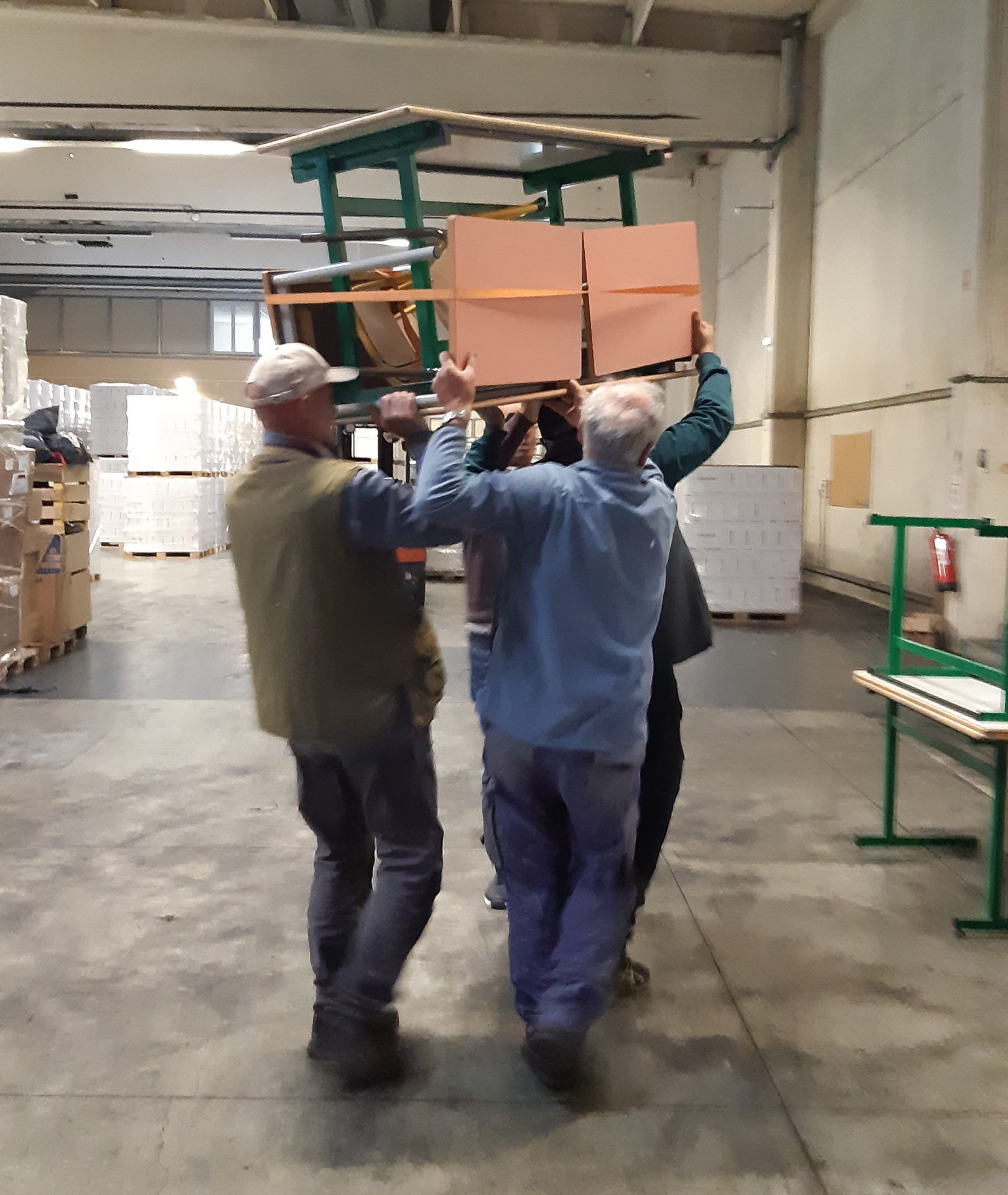Cette fois encore, l’entreprise de transport Portmann a généreusement accepté d’accueillir et de stocker gracieusement nos commandes durant plusieurs semaines dans son entrepôt principal d’Illzach. Durant deux mois, Michel a construit des coffres en bois autour du matériel médical le plus fragile afin de le protéger et de faciliter son transport.