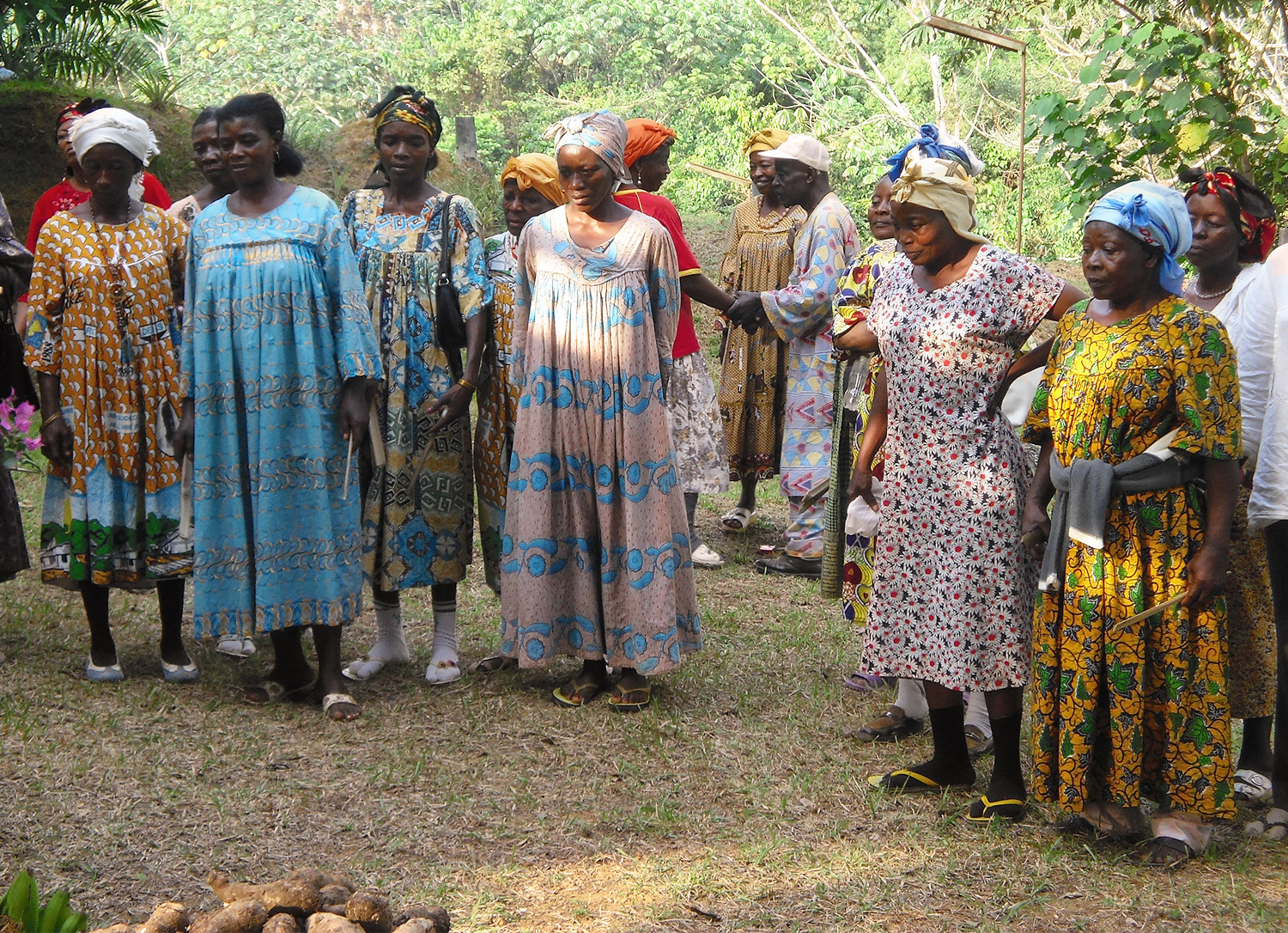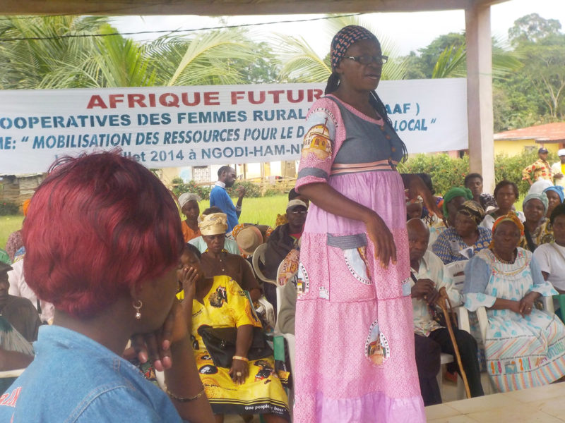Près de la moitié de la population camerounaise vit en forêt. Ce milieu leur procure des produits et des services essentiels: le bois pour faire du feu et construire maisons et outils, l’écorce, les fruits sauvages, la sève des palmiers. Cependant, les villageois vivent principalement des fruits et des légumes provenant de la culture vivrière. Si les gros travaux tels que l’abattage et la découpe des arbres sont effectués par les hommes, l’agriculture repose sur le labeur des femmes. AFRIQUE FUTURE a suscité la formation de 50 groupes de femmes rurales, constitués en entités autonomes, représentant chacun un village et réunis au sein de la SOFRAAF, Solidarité Féminine Rurale Agissante d’AFRIQUE FUTURE.